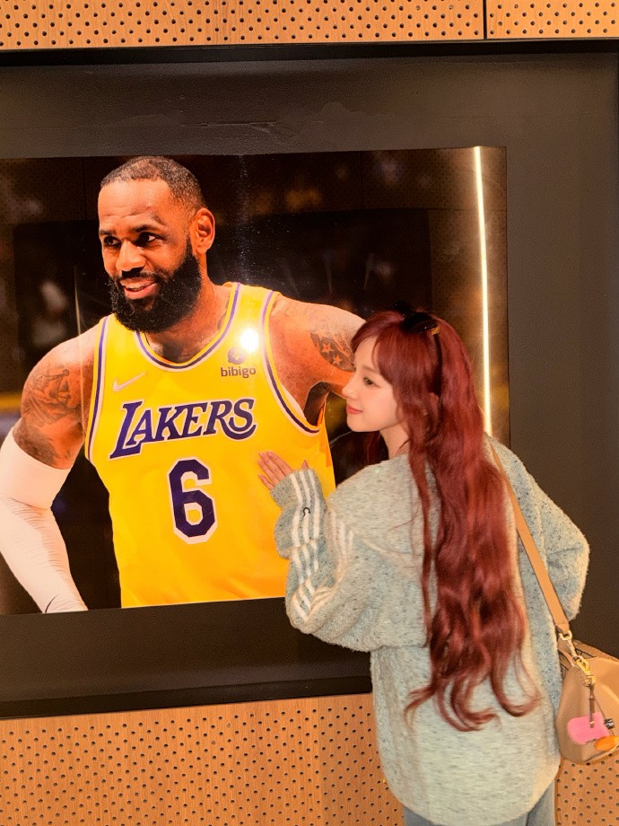 在宋雨琦的社交媒体上,发布了一组照片,宋雨琦一身休闲运动打扮,青春洋溢,外套脱下后,还小露性感。她在现场与詹姆斯的海报合影,还拿着詹姆斯的玩偶小人在看台上助威。