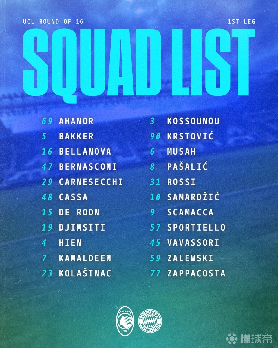 亚特兰大战拜仁大名单:CDK、埃德松-席尔瓦、拉斯帕多里缺阵