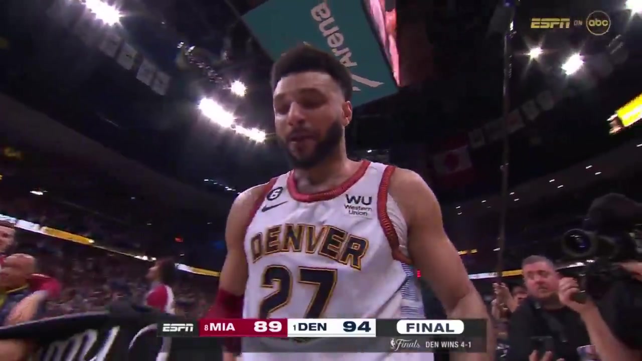 两座金杯闪闪发光穆雷和约基奇夺冠游行上一人带一座奖杯