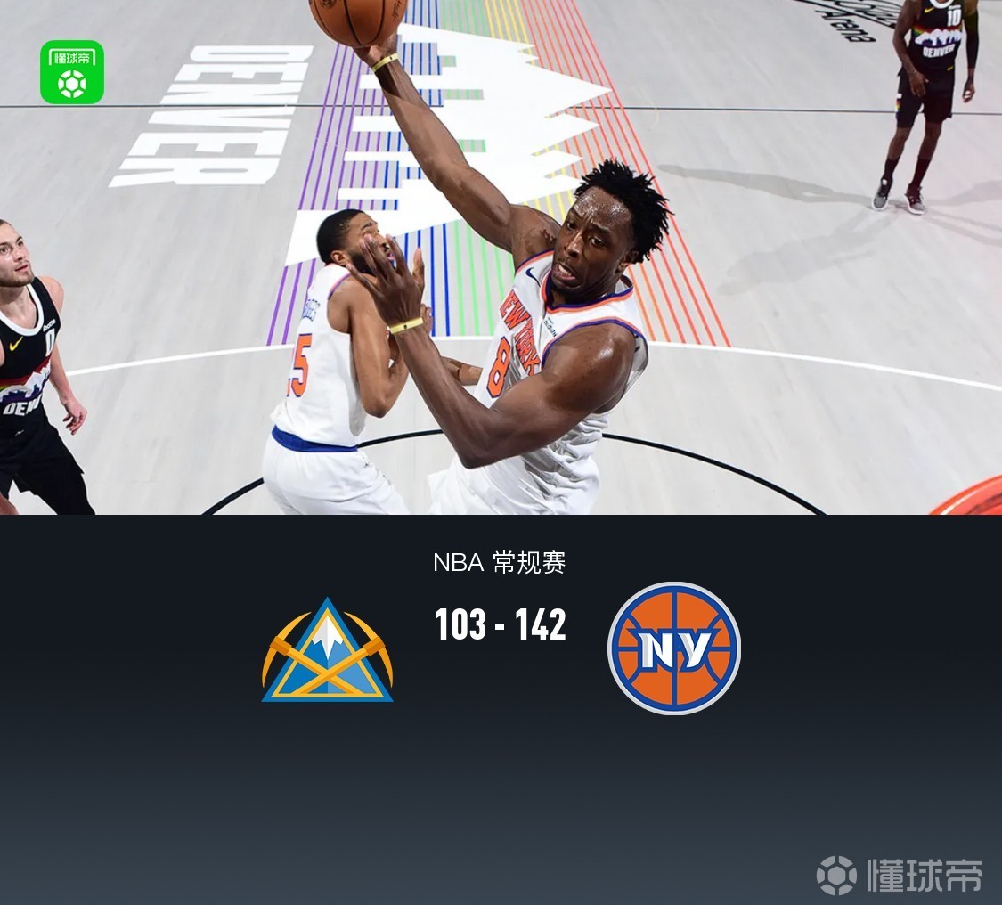 第四节掘金达龙-霍姆斯二世拿下11分,尼克斯达迪耶拿下11分,最终掘金103-142不敌尼克斯