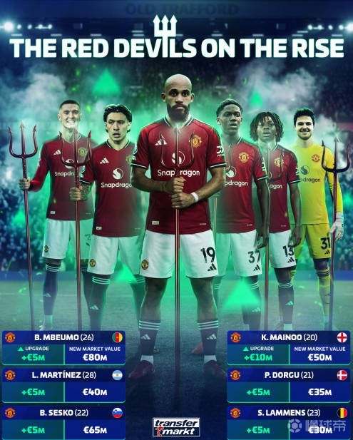 北京时间3月9日,德国转会市场公布了英超球员的最新身价,其中曼联有6名球员身价上涨。