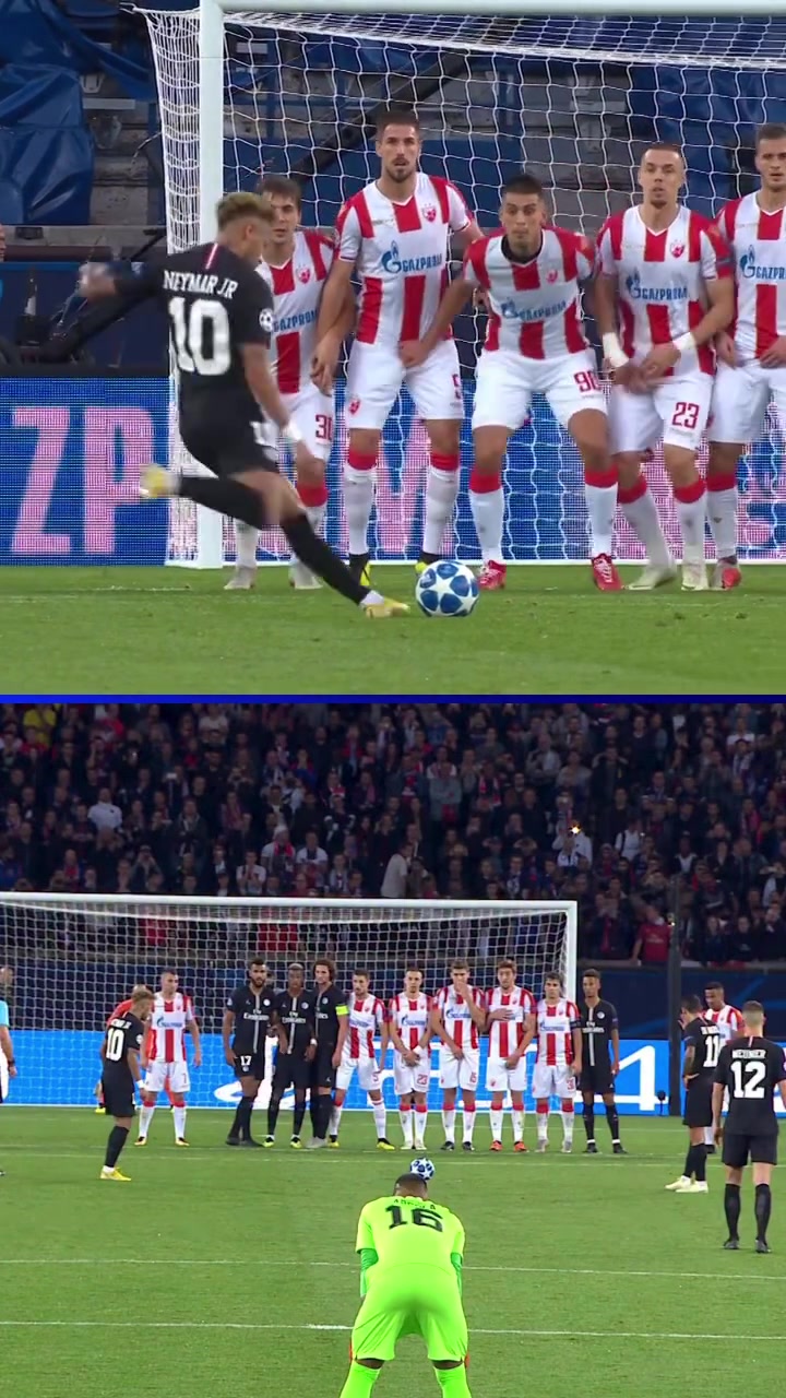 超级巨星欧冠官方晒内马尔单场比赛任意球世界波双响