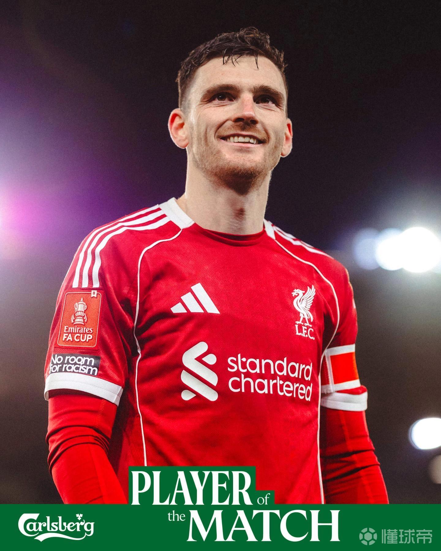传射建功,罗伯逊当选与狼队一役利物浦队内最佳球员